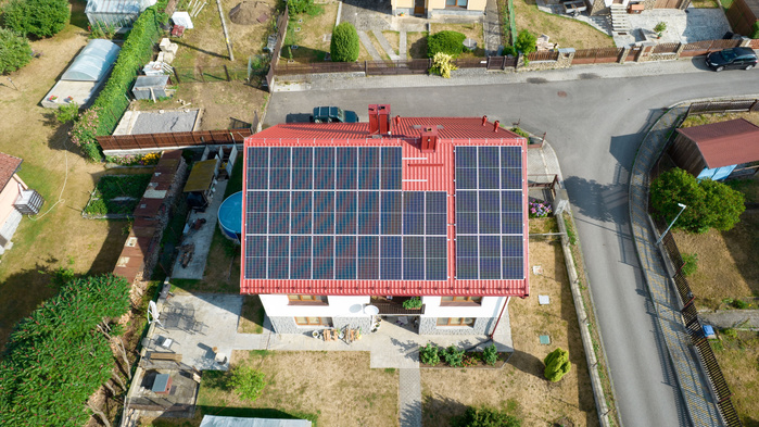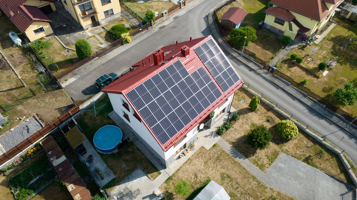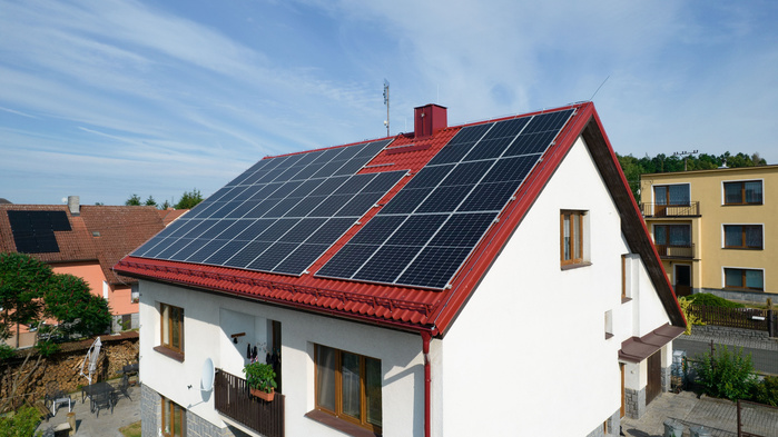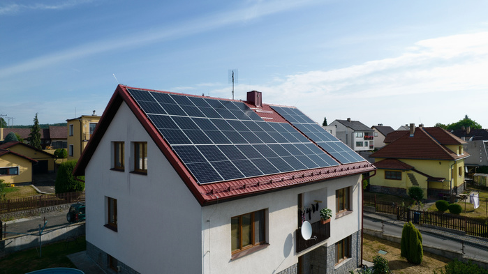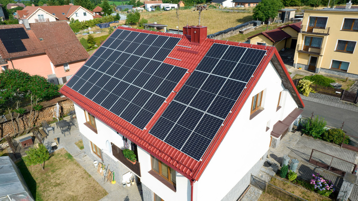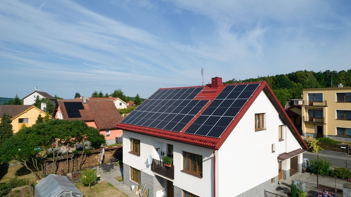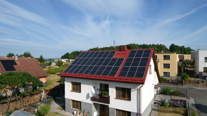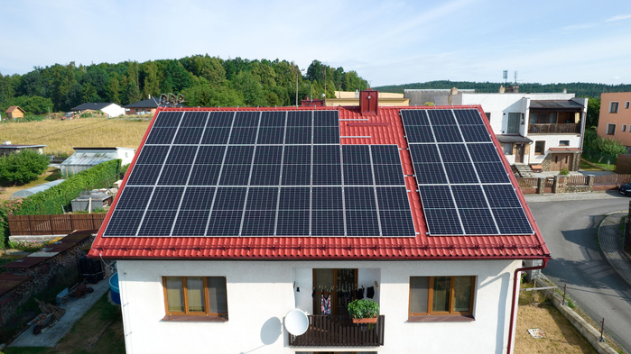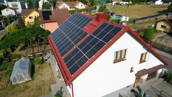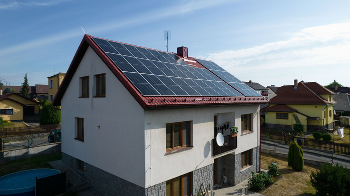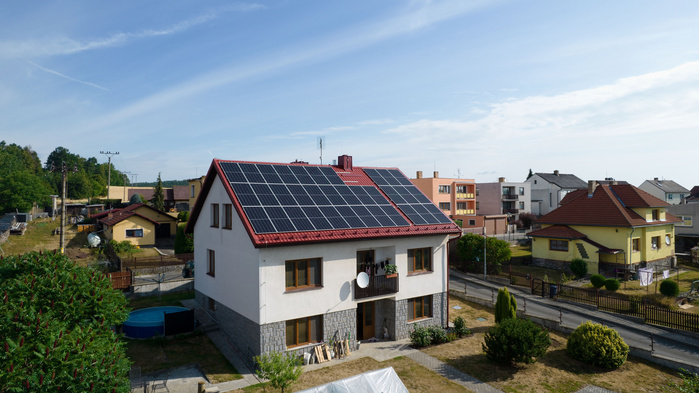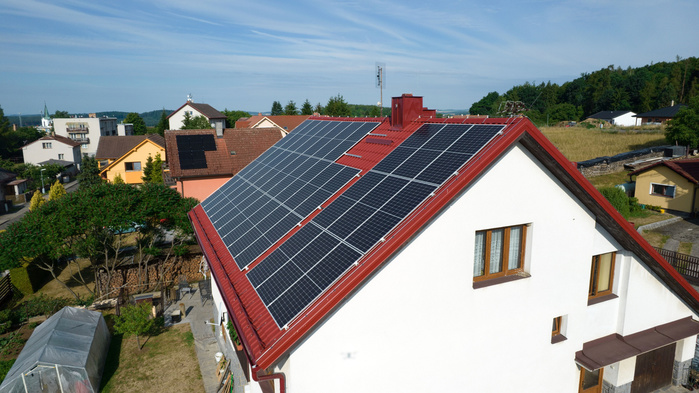 Dvougenerační rodinný dům, na jehož sedlové střeše s orientací na jih je nainstalována FVE výrobna o instalovaném výkonu 16,32 kW (34 panelů). Součástí je akumulace vyrobené energie do baterie o kapacitě 11,6 kWh. V tomto RD jsme rovněž nainstalovali i tepelné čerpadlo o výkonu 20 kW pro vytápění a ohřev TUV. Investor může požádat o dotaci z programu Nová zelená úsporám na instalaci FVE s akumulací a na výměnu zdroje vytápění na tepelné čerpadlo.