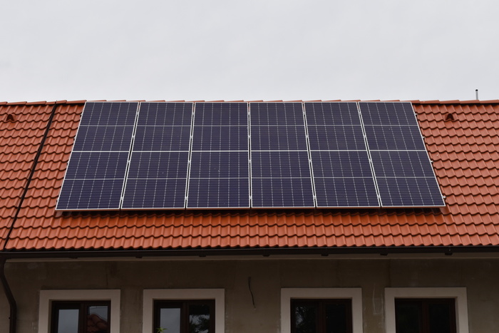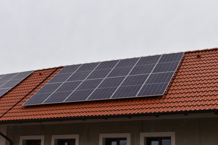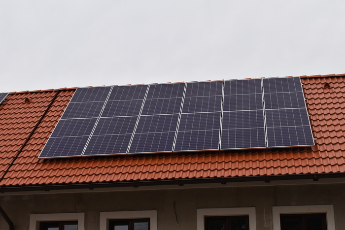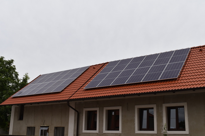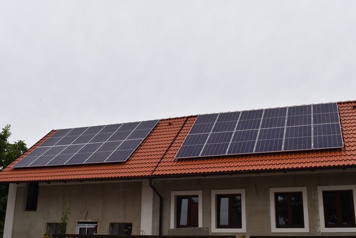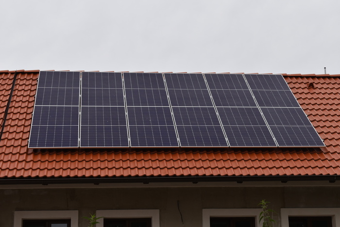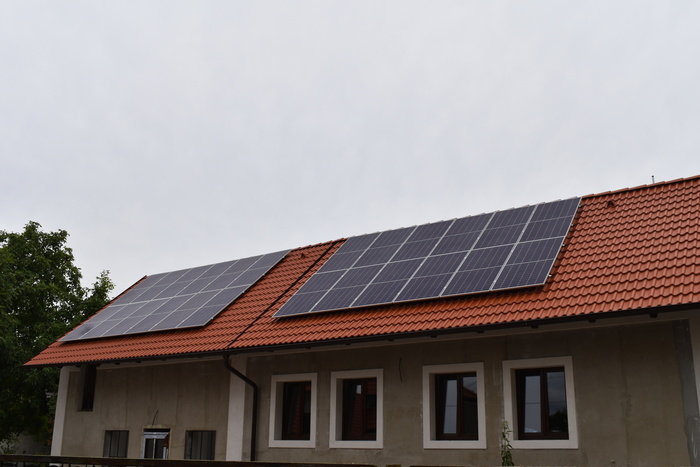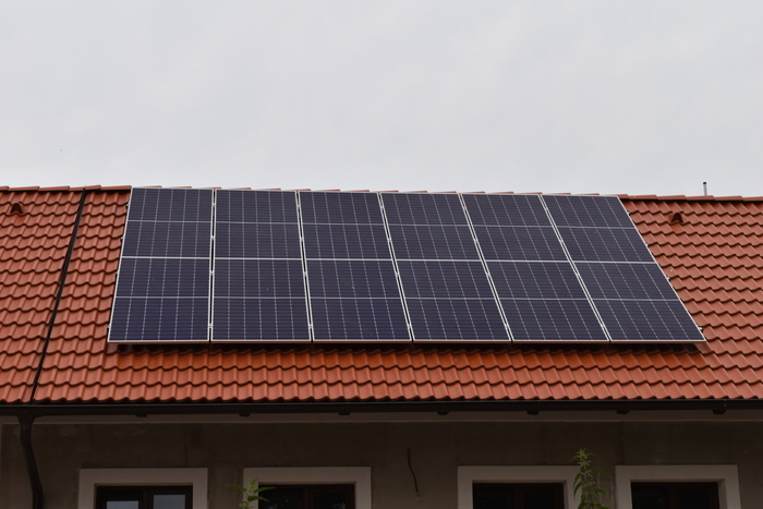 Na sedlovou střechu (orientace na J) jsme na jaře 2023 nainstalovali fotovoltaickou výrobnu 11,32 kW pro pokrytí spotřeby rodinného domu. Přebytky vyrobené energie jsou ukládány do bateriové akumulace o kapacitě 11,6 kWh a součástí instalace je i dobíjecí stanice elektromobilů. Investor využil dotaci z programu Nová zelená úsporám na FVE s akumulací a na dobíjecí stanici.